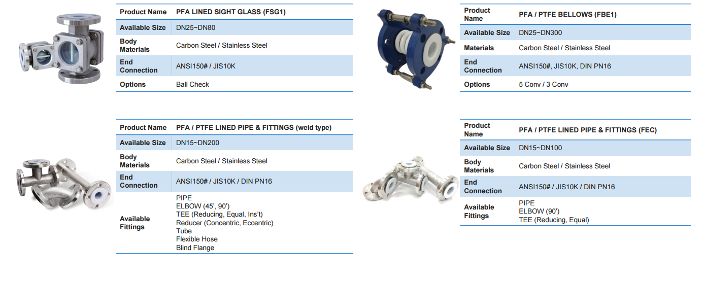 PFA/PTFE LINED PIPE & FITTINGS